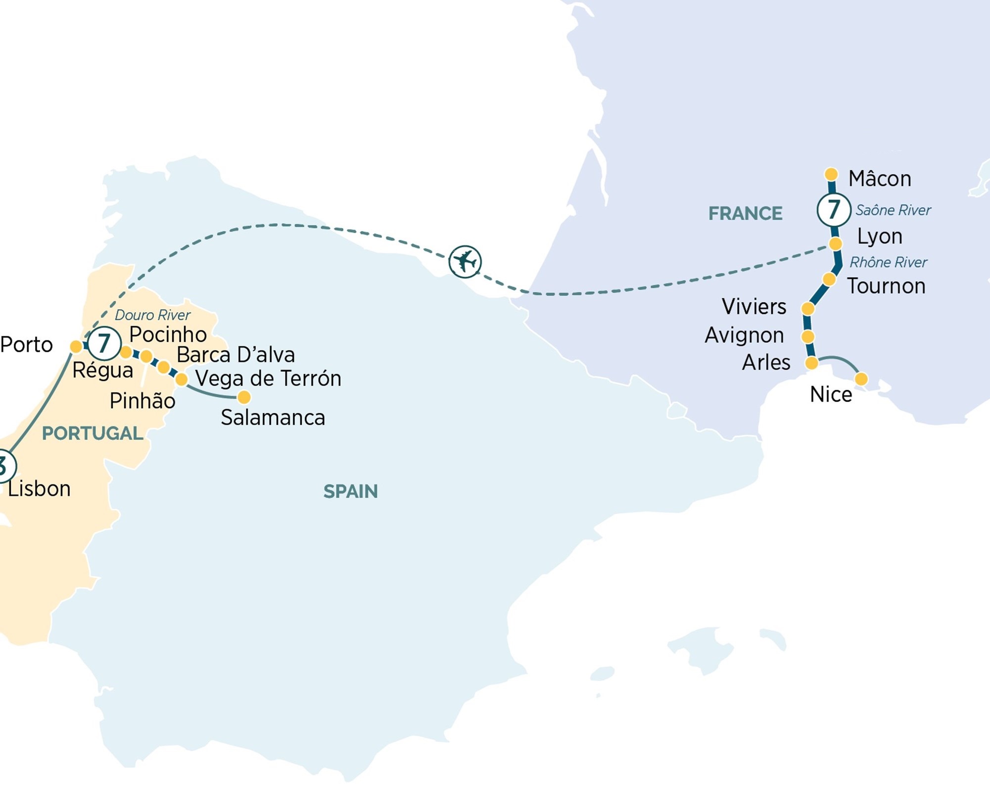 Soak up the timeless beauty, culinary delights and distinct culture of two remarkable European regions, as you explore Lisbon and Portugal’s Douro River and the Rhône and Saône rivers of Southern France on this combined river cruise journey.